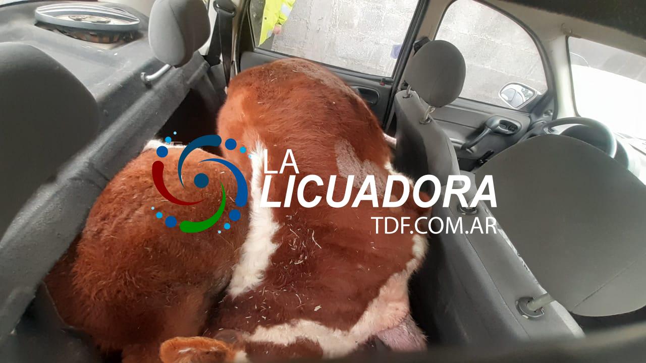 Río Grande: Dos vacunos sin vida fueron encontrados dentro de en un Chevrolet Corsa