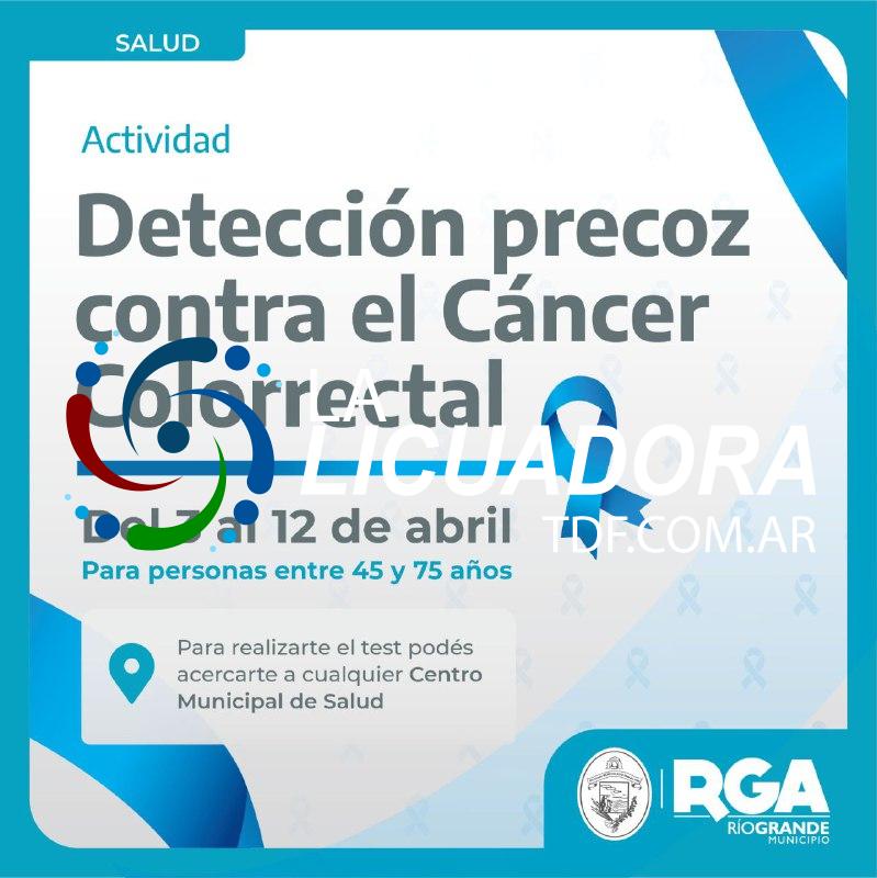 Desde el 3 hasta el 12 de abril, el Municipio de Río Grande llevará adelante la jornada de salud destinada a la prevención del Cáncer de Colon. La misma está orientada a personas entre 45 y 75 años.