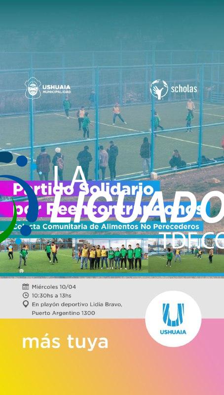 Ushuaia 09/04/2024.- La Secretaría de Cultura y Educación de la Municipalidad de Ushuaia, a través del programa Scholas Ocurrentes, llevará adelante este miércoles 10 a las 10:30 horas el Partido Solidario Por Reencontrándonos, donde se realizará una colecta comunitaria de alimentos no perecederos para la institución.