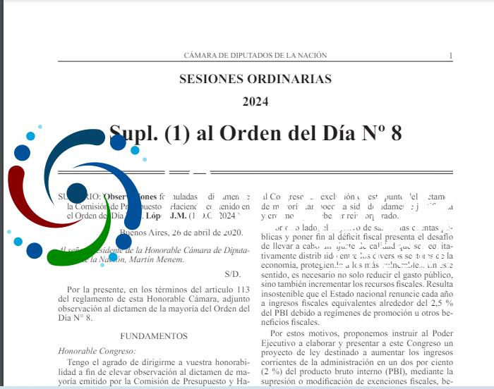 SUMARIO: Observaciones formuladas al dictamen de la Comisión de Presupuesto y Hacienda, contenido en el Orden del Día N° 8. López J.M. (1-D.O.-2024.)