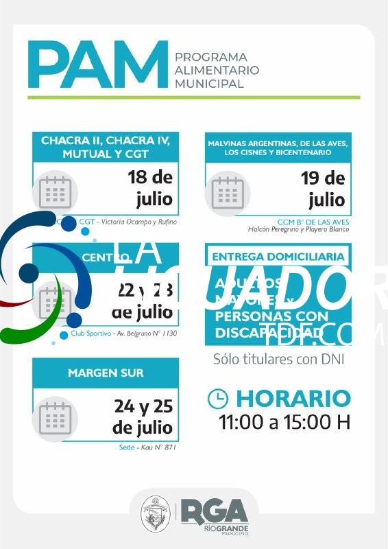 El Municipio de Río Grande informa a la comunidad que este jueves 18 de julio comienza la distribución de los módulos alimentarios a las vecinas y vecinos de distintos puntos de la ciudad que están empadronados en el Programa.
