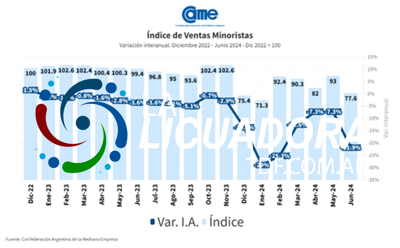 Así surge del Índice de Ventas Minoristas Pymes de la Confederación Argentina de la Mediana Empresa (CAME), elaborado en base a un relevamiento mensual entre 1.276 comercios minoristas del país, realizado del 1 y 5 de julio.