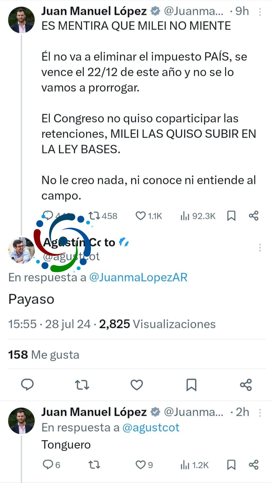 Como era obvio suponer, un integrante de republicanos de Tierra del Fuego lo cruzó, tratandolo de «payaso», el diputado nacional, respondió con una sola palabra, «TOGUERO».