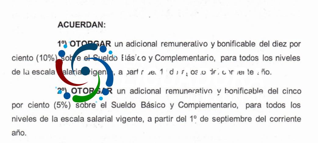 El adicional es remunerativo y bonificable de la escala salarial vigente a partir del | de agosto de este año.