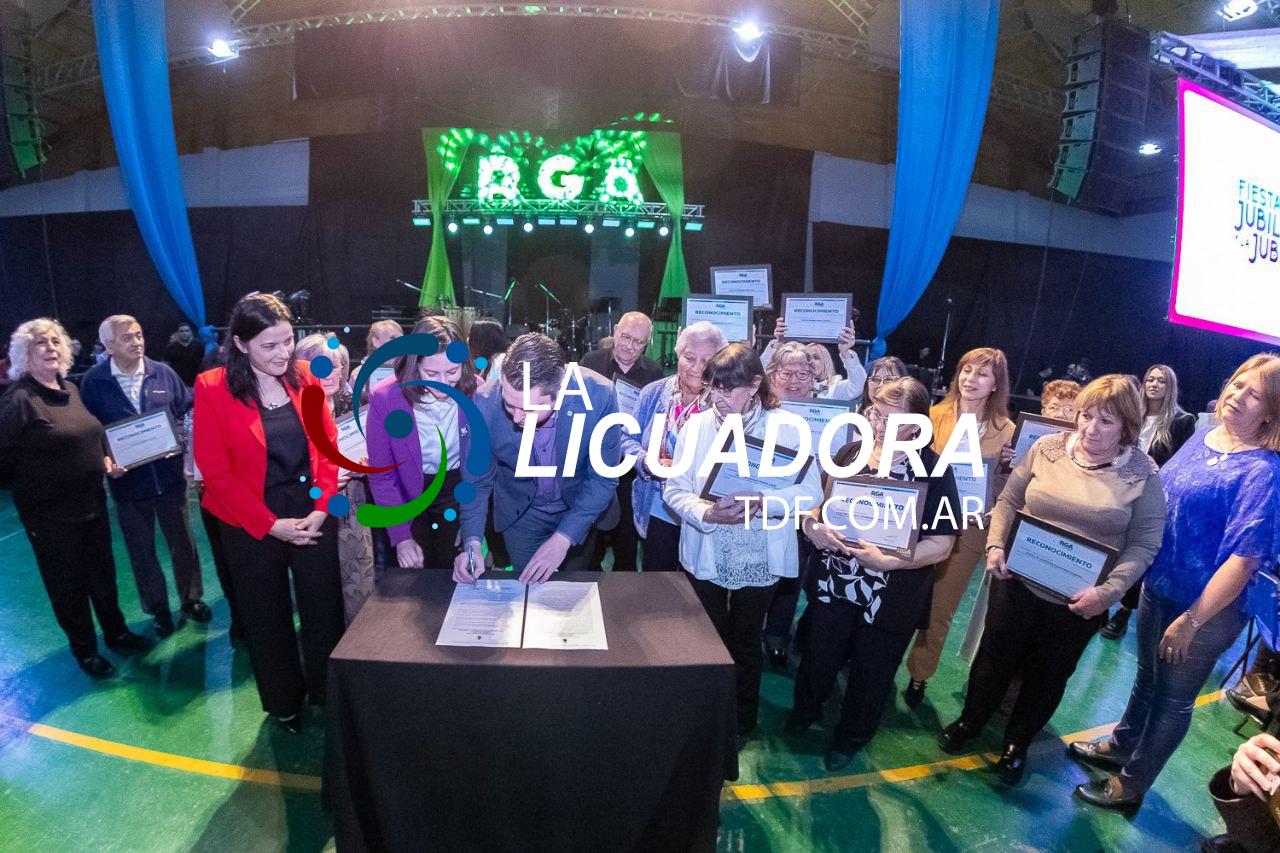 El intendente Martín Perez, junto a la secretaria de Género y Desarrollo Comunitario, Ivana Ybars, y la directora general para el Bienestar de las Personas Adultas Mayores, Analía Caruso, firmó el decreto para la creación de la figura del Defensor de las Personas Mayores, en el marco de la celebración por el Día de los Jubilados que congregó a 3000 personas en el gimnasio del colegio Don Bosco.