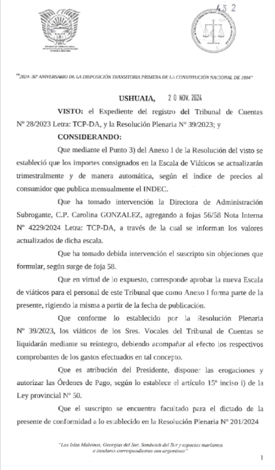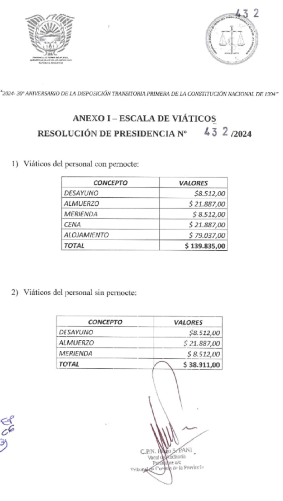 Lo que ven abajo es el nuevo sistema de viáticos para los vocales del Tribunal de Cuentas, por día 139.835 pesos por día, mientras 1que para un empleado, al que tampoco se le paga pernocte, son solo 38.911 pesos diarios, un escandalo, que alguien debe parar, por esto es altamente sospechoso el silencio de la Camara Legislativa, ya que ninguno de los bloques políticos ha emitido sonido sobre esta cadena de denuncias que van desde la persecución laboral a la agresión verbal perpetrada por Carlos Pani y Miguel Longhitano.