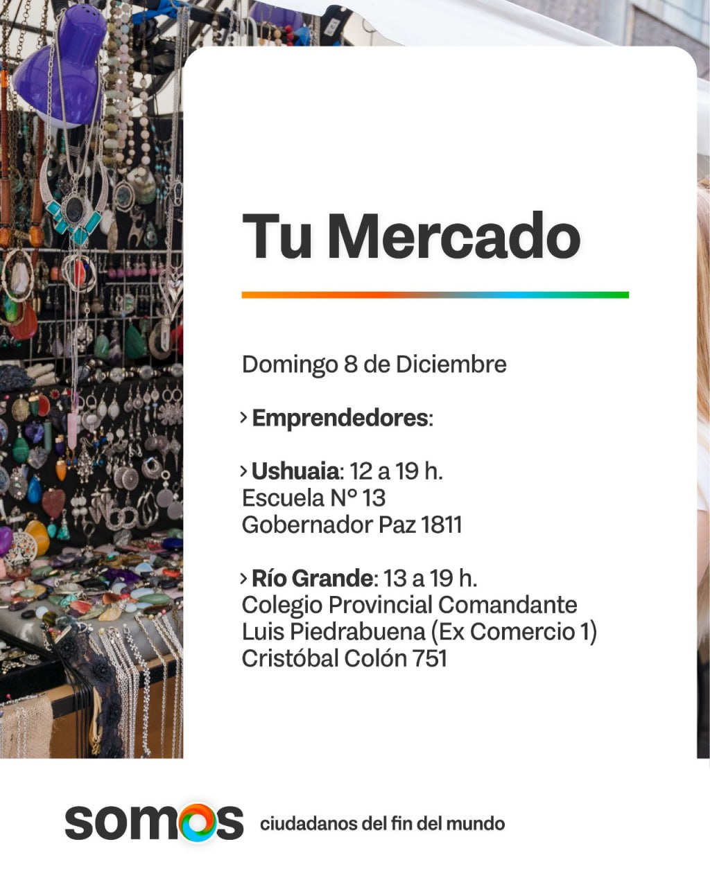EL FIN DE SEMANA SE REALIZA LA ÚLTIMA EDICIÓN DEL AÑO DE TU MERCADO 8 DICIEMBRE RIO GRANDE, 9 DICIEMBRE USHUAIA.