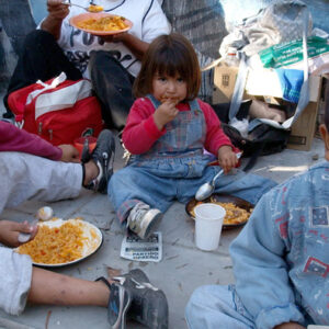 BAS01 – BUENOS AIRES (ARGENTINA) 05/07/2003 – Niños de barrios pobres en la ciudad de Buenos Aires, reciben alimentos por parte de instituciones solidarias que se instalan en la vías públicas. Unas 1.4 millones de familas de los casi ocho millones de hogares argentinos pasan hambre, según un informe del Banco Mundial publicado hoy. Argentina es uno de los principales países exportadores de productos agrícolas, sin embargo 1.381.945 de hogares carecieron de la alimentación suficiente y unos 450.000 fueron catalogados como víctimas de hambre «en forma severa». EFE/César De luca