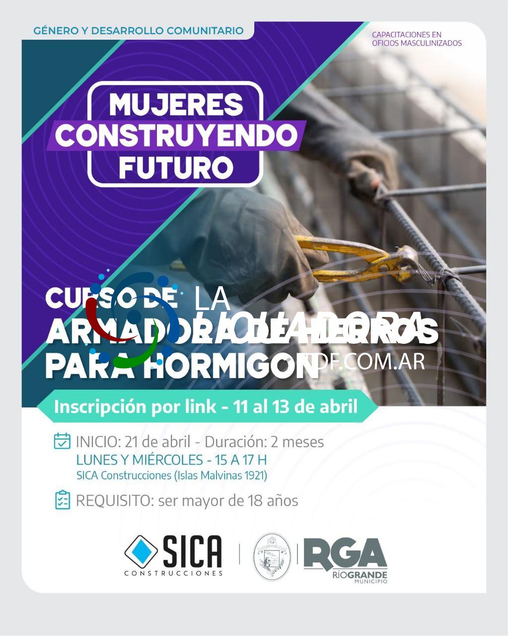 Rio Grande 12/04/2025.- En el marco del programa Mujeres Construyendo Futuro, el Municipio de Río Grande, en convenio con SICA SRL, lanza una nueva capacitación gratuita destinada a mujeres que deseen formarse en el sector de la construcción. Desde el viernes 11 hasta el 13 de abril estarán abiertas las inscripciones para esta propuesta de formación.