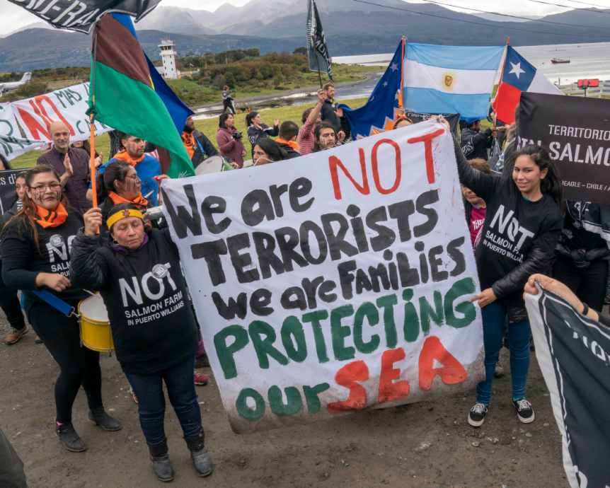 Esa opinión ha ganado fuerza en el sur de Chile. Tal vez por eso la visita del rey Harald V de Noruega no fue solo una fuente de hermosas postales fotográficas para la casa real nórdica. En su recorrido por los prácticamente vírgenes canales del sur de Chile, esos fiordos que tanto se parecen a los de su país, el rostro de Harald V se fue desencajando. Protestas de una serie de organizaciones indígenas y de defensa del medioambiente pedían al rey que las empresas salmoneras de Noruega no se instalen en el extremo sur de América. «Destruyen el medioambiente y las comunidades ribereñas», decían muchos.