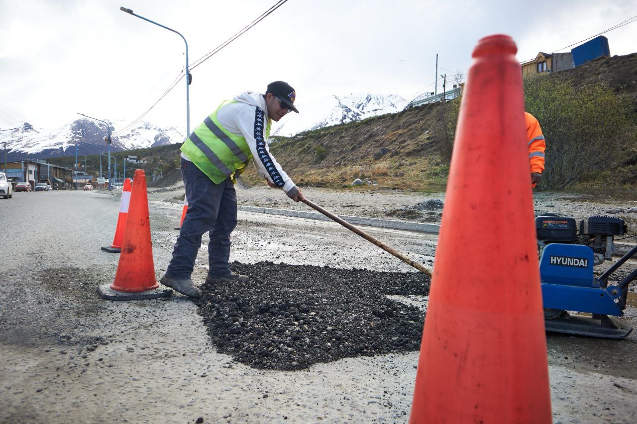 Ushuaia 15/10/2025.- La Municipalidad de Ushuaia, a través de la Secretaría de Inversión y Planificación Pública, da continuidad al plan de bacheo de calles y avenidas que se puso en marcha tiempo atrás con la mejora de las condiciones climáticas y se intensificó con la finalización de la temporada invernal.