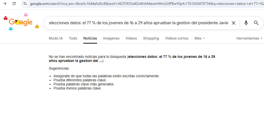 No hay datos de encuestas recientes disponibles públicamente que confirmen que el 77% de los jóvenes de 16 a 29 años aprueban la gestión del presidente Javier Milei. Las cifras de aprobación general de su gestión en diversas encuestas suelen rondar entre el 55% y el 60% en su punto más alto, y en algunas instancias, su desaprobación supera a la aprobación.