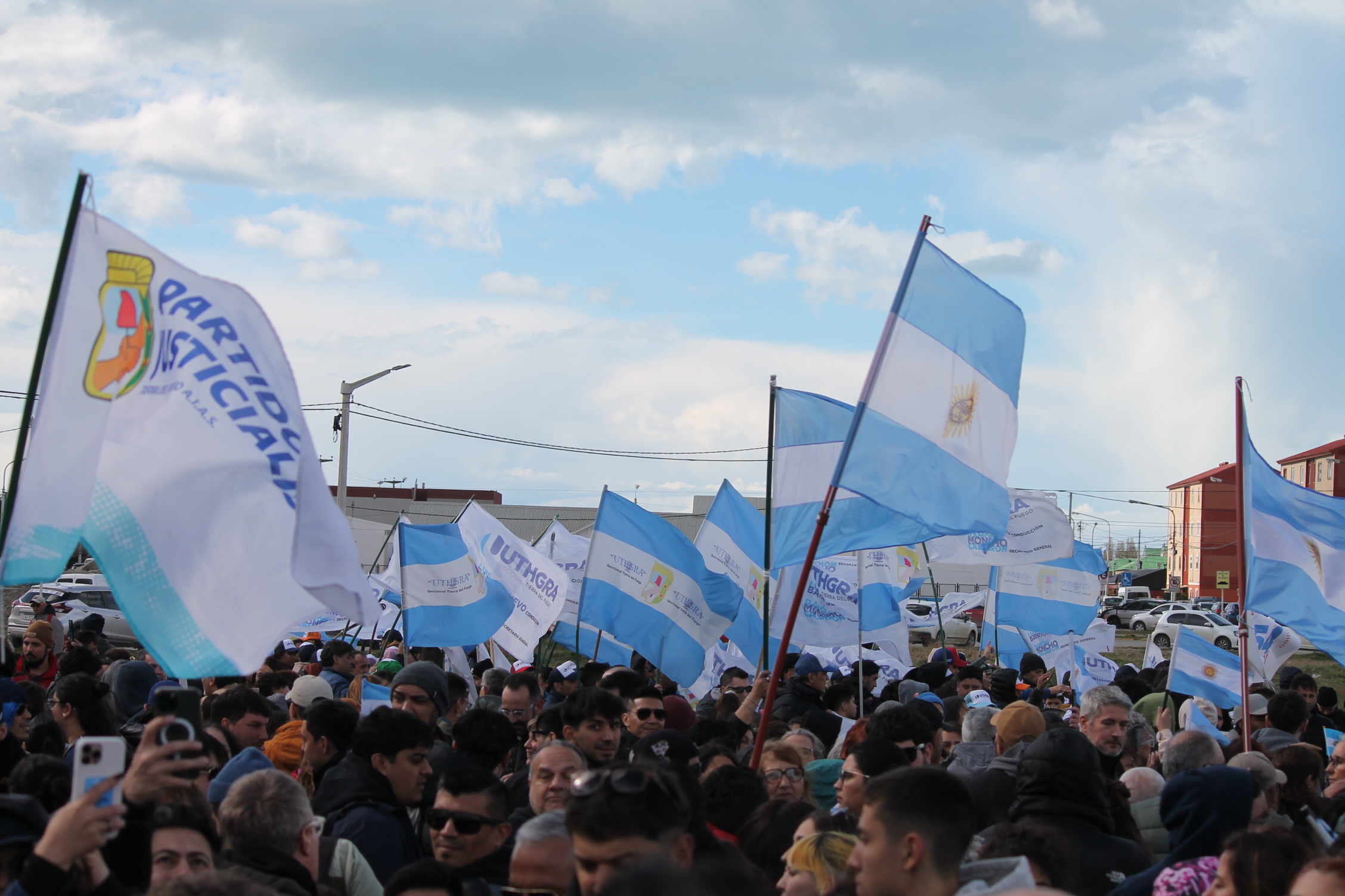 El sector encabezado por Gustavo Melella gobernador de la provincia y Walter Vuoto, intendente de Ushuaia cerro su campaña en Rio Grande, acompañados de cientos de militantes que portaron banderas argentinas y del frente que conforman.