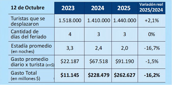 l Reservas de verano. Octubre tradicionalmente funciona como un momento de anticipación turística. Muchos viajeros aprovecharon este fin de semana largo no sólo para escapadas inmediatas, sino también para hacer reservas de cara al verano, tantear destinos y confirmar vacaciones futuras. En ese sentido, este fin de semana actuó como un “termómetro” del interés estacional: aunque el contexto económico condicione el gasto, hay una intención clara de planear viajes y asegurar alojamiento con anticipación.