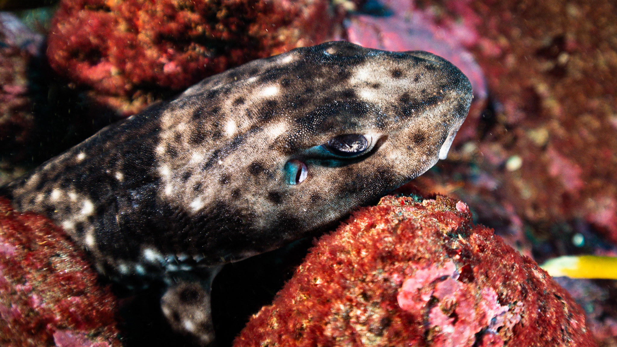 El nombre “pintarroja” viene del patrón de manchas oscuras en su dorso, que se asemejan a pintas color bordó o marrón. Es un detalle que, según Delpiani, permite identificarla fácilmente en el fondo marino. Este tiburón, conocido también como “gato” o Schroederichthys chilensis, cumple un rol clave en los ecosistemas costeros porque conecta los niveles tróficos inferiores con los superiores. Vive entre los bosques de algas donde se camufla con las rocas gracias a su cuerpo salpicado de puntos y bandas. A diferencia de otros tiburones, no es un gran migrador y pasa gran parte de su vida en cuevas y grietas del fondo marino, donde su forma alargada y flexible le permite moverse como una serpiente.
