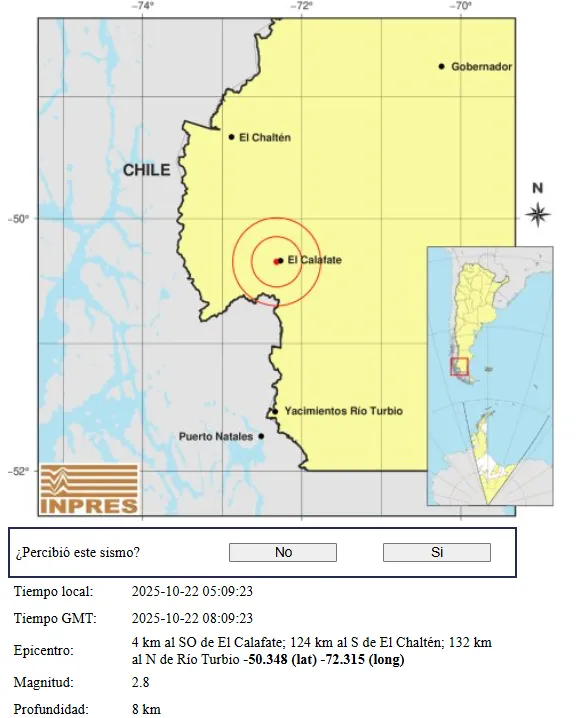 El INPRES mantiene un registro constante de la actividad sísmica en la región patagónica, donde —si bien no es una zona de alta sismicidad— eventos de baja magnitud pueden ocurrir ocasionalmente, asociados a reajustes naturales de las placas en el subsuelo cordillerano.