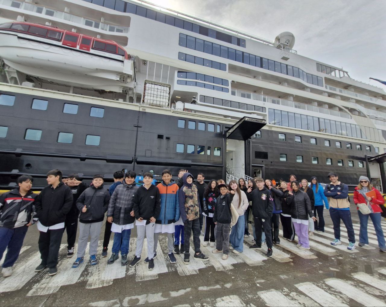 Tierra del Fuego 10/11/2025.- En una acción conjunta entre el Instituto Fueguino de Turismo, la Asociación Internacional de Tour Operadores Antárticos (IAATO), con el acompañamiento de la Dirección Provincial de Puerto y el Ministerio de Educación, inició el ciclo de visitas de escuelas provinciales a cruceros que viajan rumbo a la Antártida desde el Puerto de Ushuaia.