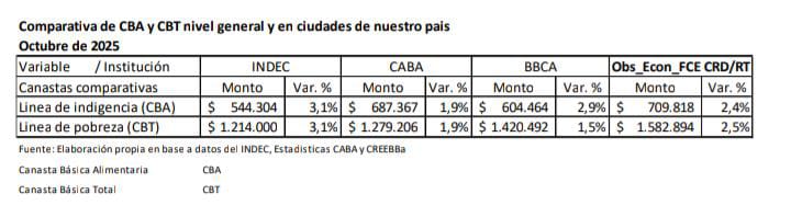 El Observatorio de Economía de la FCE UNPSJB calcula ambos indicadores basándose en precios relevados en supermercados, mostrando que la Patagonia Sur mantiene los precios más elevados en ambas canastas, confirmando el patrón reflejado en el costo del changuito.