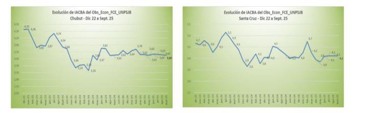 La pérdida de puesto de trabajo formales en Patagonia Sur a junio de 2025, alcanzó los 26.000 trabajadores, que se han distribuido en las siguientes categorías: Salida hacia otras regiones con mayor empleabilidad (Cuenca Neuquina), traslado hacia otras ciudades para gozar jubilaciones, traslado hasta puestos de trabajo informales, mayor presión en el mercado laboral (Río Gallegos, Río Grande-Ushuaia) , a partir de lo anterior la foto que se presenta sobre la IACBA abarca a un categoría en disminución: El trabajo formal (Que capita Jubilaciones y obras sociales) privado.