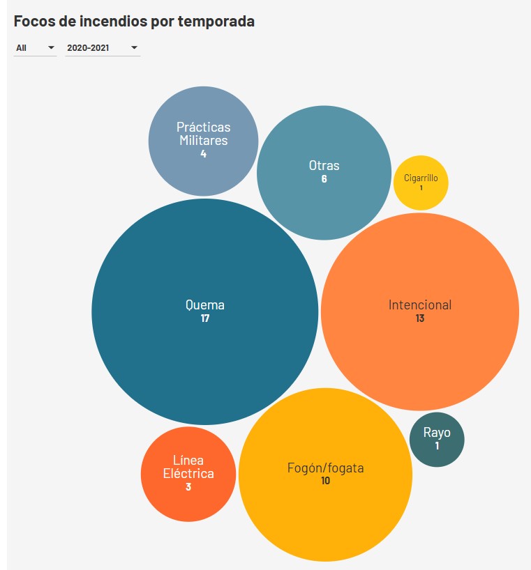 La principal causa de incendio fueron la negligencia, el descuido, o la intencionalidad. El 36% de los eventos se relacionan con quemas y el 25% fueron originados intencionalmente.