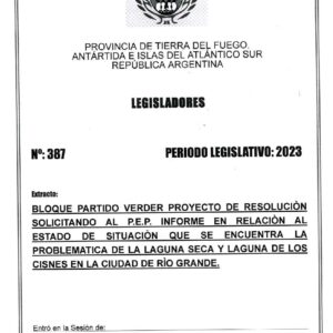 As. Nº 387-23 PEDIDO DE INFORME AL PODER EJECUTIVO SOBRE LA LAGUNA SECA O LAGUNA LOS CISNES