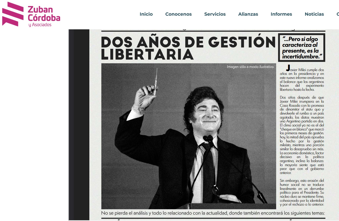 Javier Milei cumple dos años en la presidencia y en este nuevo informe analizamos el balance que los argentinos hacen del experimentolibertario hasta la fecha.Dos años después de que Javier Milei irrumpiera en la Casa Rosada con la promesa de dinamitar el statu quo y devolverle el rumbo a un paísagotado, los datos muestran una… Leer más »
