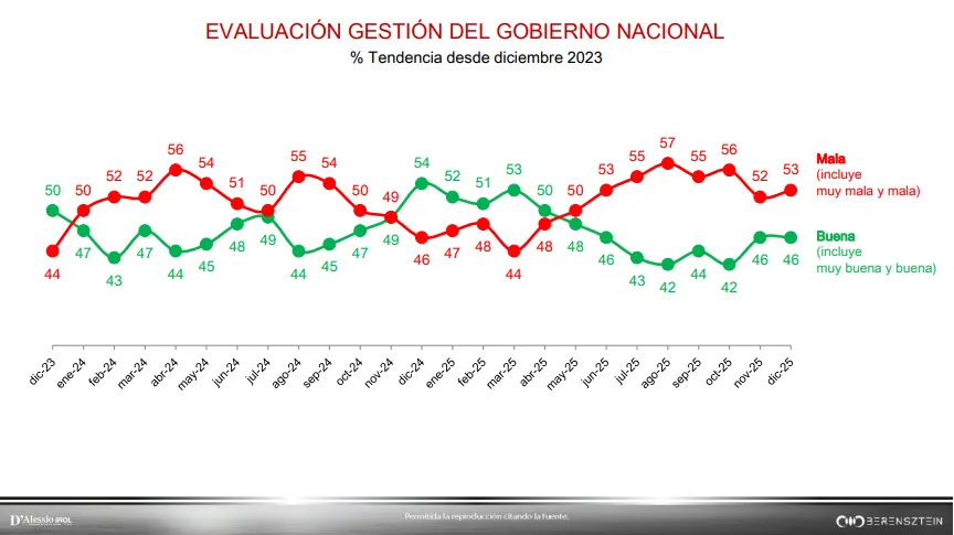 El último Monitor de Humor Social y Político de D’Alessio IROL / Berensztein trazó una radiografía precisa del clima social con el que la Argentina despidió el 2025. La encuesta confirma un escenario de polarización  política, preocupaciones persistentes por la economía y la inseguridad, y un Gobierno que logra sostener su núcleo de apoyo, pero sin ampliar consensos.