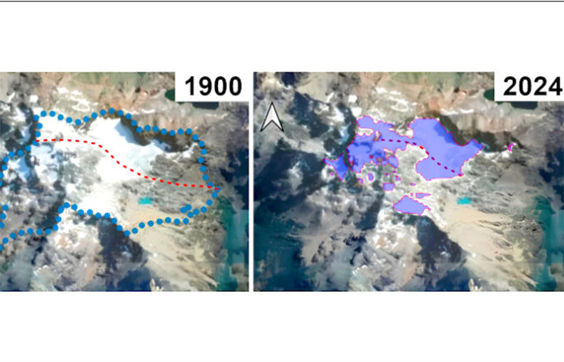 ¿Cómo se llegó a esta situación? Para responder, la investigadora analizó la evolución del glaciar desde 1900 —el fin de la última ‘Pequeña Edad de Hielo’— hasta 2024. Se basó en imágenes satelitales, y también en recorridas a pie. “Esas salidas fueron necesarias para delimitar la superficie glaciar histórica, ya que, obviamente, no hay imágenes satelitales de ese período frío”, aclaró.