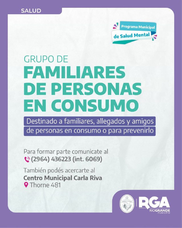 Rio Grande 24/02/2026.- El Municipio de Río Grande, por medio de la Dirección de Salud Mental y Adicciones, informa a la comunidad que continúan activos los dispositivos de acompañamiento destinados a personas que atraviesan consumos problemáticos, así como a sus entornos familiares.