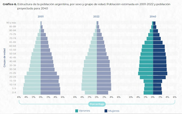 Argentina atraviesa un proceso sostenido y avanzado de envejecimiento poblacional que ya impacta de lleno en la estructura social y económica del país. En 2022, el 15,7 % de la población tenía más de 60 años, y las proyecciones oficiales indican que ese porcentaje superará el 20 % hacia 2040, consolidando un cambio profundo en la pirámide demográfica. Este fenómeno es el resultado combinado de la fuerte caída de la natalidad y del aumento sostenido de la esperanza de vida, que hoy se ubica en torno a 77–78 años. El envejecimiento de la población plantea desafíos estructurales de gran magnitud para los sistemas de salud, seguridad social y previsión, al incrementar la demanda de prestaciones y tensionar el equilibrio entre población activa y pasiva, obligando a repensar políticas públicas de largo plazo con una mirada integral y anticipatoria.
