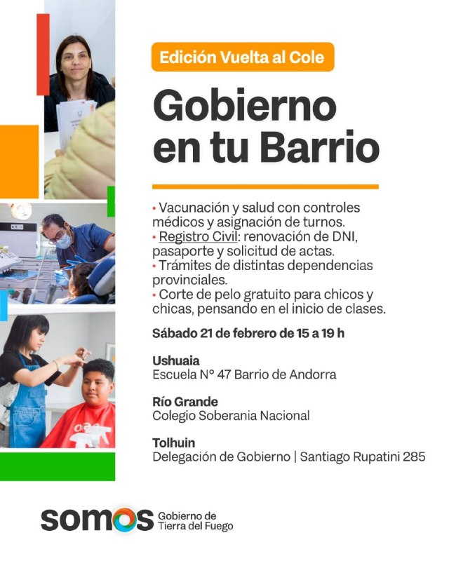 Durante toda la jornada, vecinas y vecinos podrán acceder de manera simple a distintos trámites y servicios provinciales en un mismo espacio. El Ministerio de Salud brindará vacunación, controles médicos, acciones de promoción y prevención, así como asignación de turnos, reforzando el acompañamiento sanitario previo al comienzo de clases.