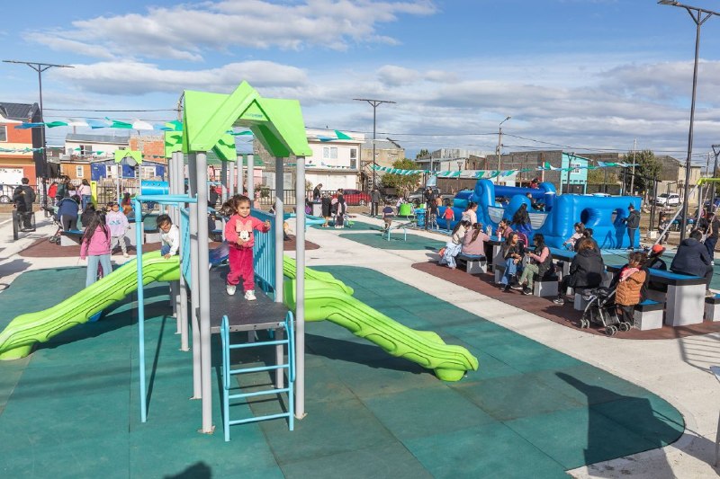 En esta oportunidad, el barrio Cabo Peña de la zona sur de Río Grande, cuenta con un nuevo punto de encuentro ubicado en Holken y Yourka. La plaza “Mam” posee nuevos juegos recreativos, sectores de estar con mesas y sillas, iluminación LED, veredas, parquización y la puesta en valor de una cancha de básquet, ampliando así las posibilidades de recreación y disfrute para todas las edades.