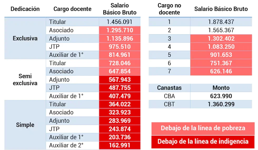 Datos del sistema universitario indican que los salarios perdieron hasta un 50% de su poder de compra, lo que ya genera renuncias de docentes y dificultades para cubrir cátedras en distintas carreras.