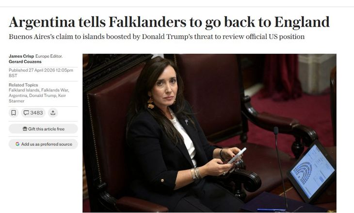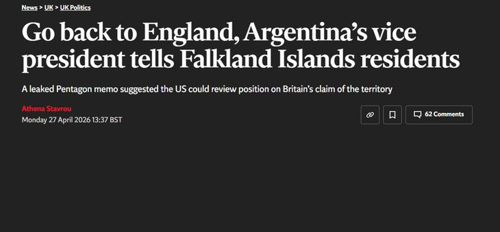 Por su parte, The Independent tituló: «‘Vuelvan a Inglaterra’, les dice la vicepresidente argentina a los isleños», en un artículo donde también se da cuenta de que Villaruel dijo: «Hoy, más que nunca, las Malvinas son argentinas».
