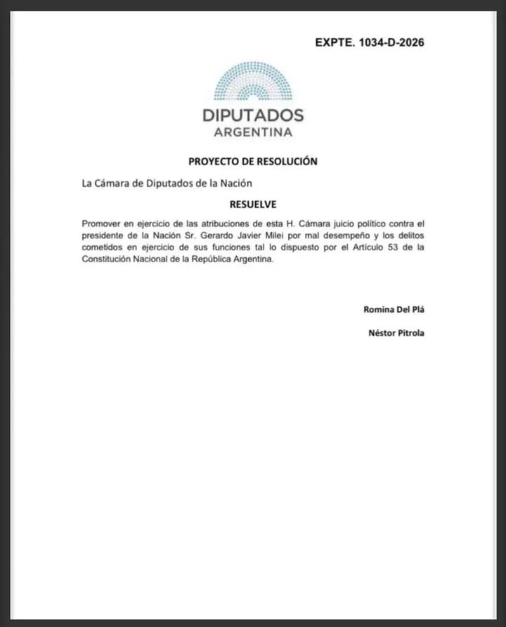 - Estado del proceso: El pedido es una iniciativa de la oposición, pero para prosperar requiere mayoría en Diputados y luego en el Senado.