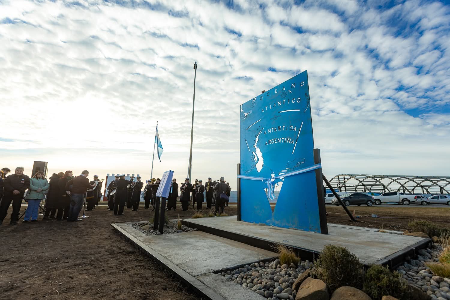 El monumento inaugurado ayer y que conmemora el 36° aniversario de la provincialización de Tierra del Fuego en 1990.